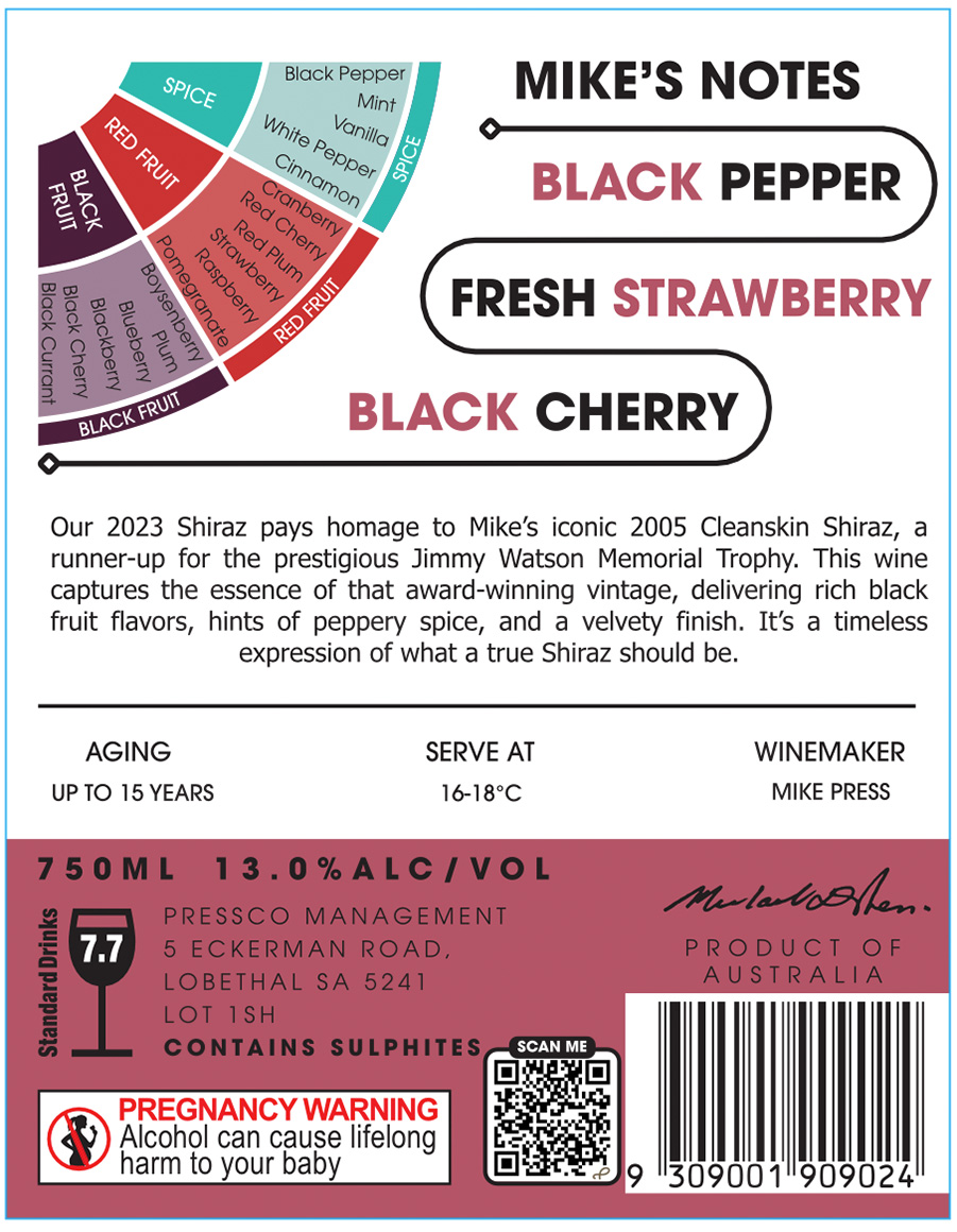The 2023 Shiraz fruit has been selected from a vineyard I know well and that has had a very similar terroir to the vineyard that produced my first Shiraz in 2005 and then other vintages.